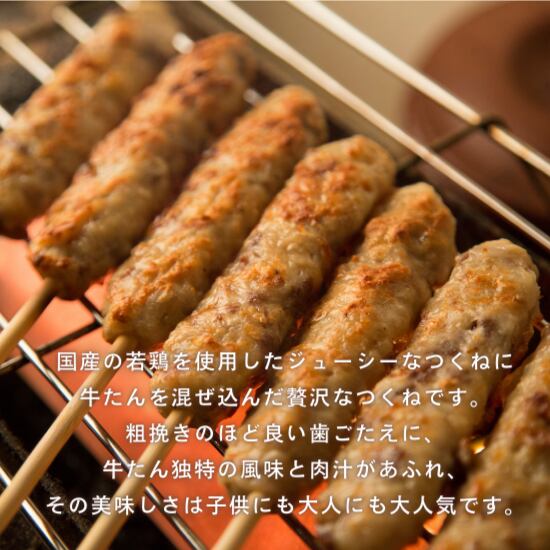 国産の若鶏を使用したジューシーなつくねに牛たんを混ぜ込んだ贅沢なつくねです。